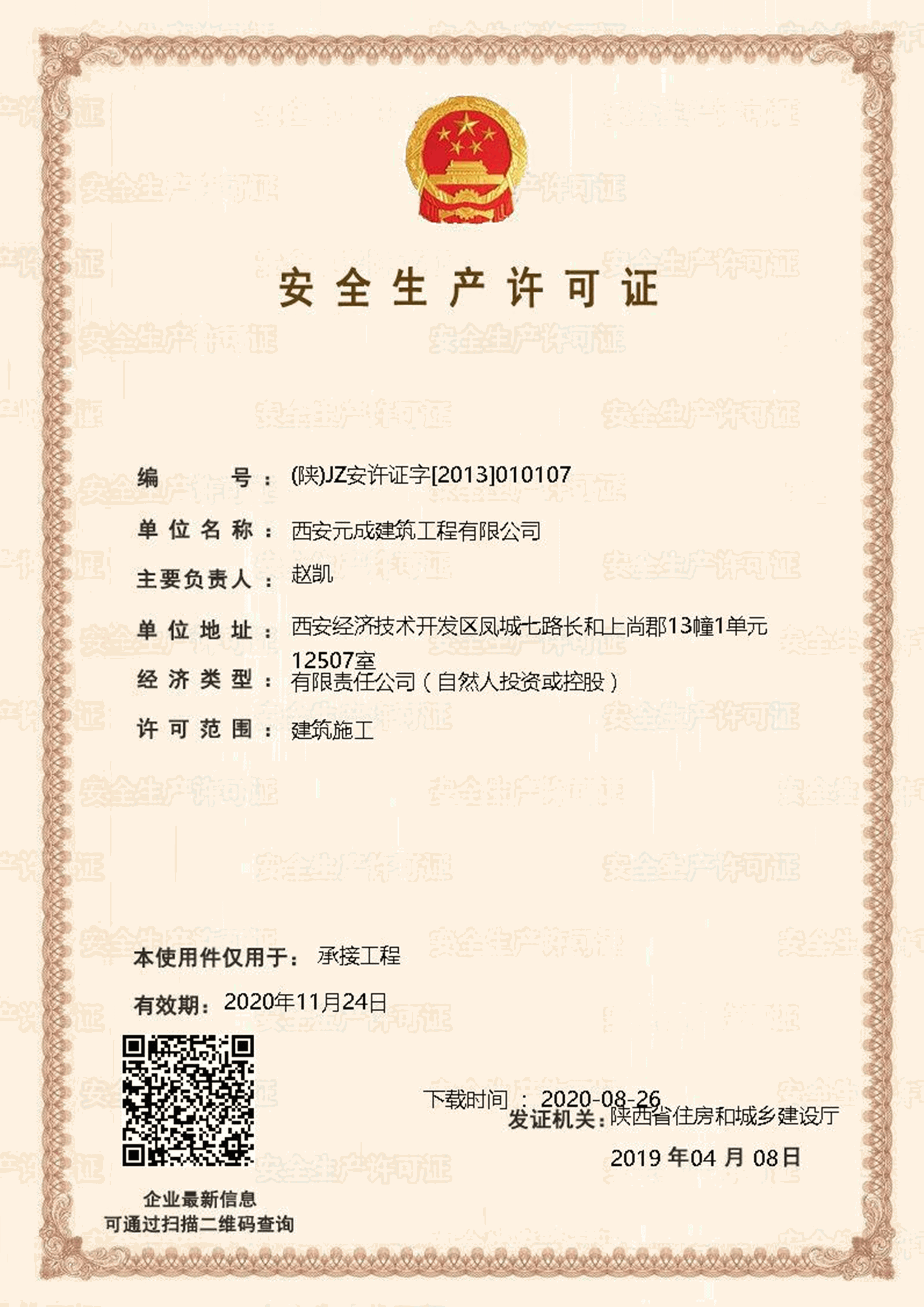 西安元成建筑工程有限公司成立于2012年,是一家擁有建筑工程、市政公用工程、石油化工工程、機(jī)電工程施工總承包貳級;鋼結(jié)構(gòu)工程、防水防腐保溫工程專業(yè)承包貳級;電力工程、水利水電工程施工總承包叁級;建筑機(jī)電安裝工程、輸變電工程、環(huán)保工程專業(yè)承包三級;模板腳手架專業(yè)承包、勞務(wù)分包等綜合性施工企業(yè)。